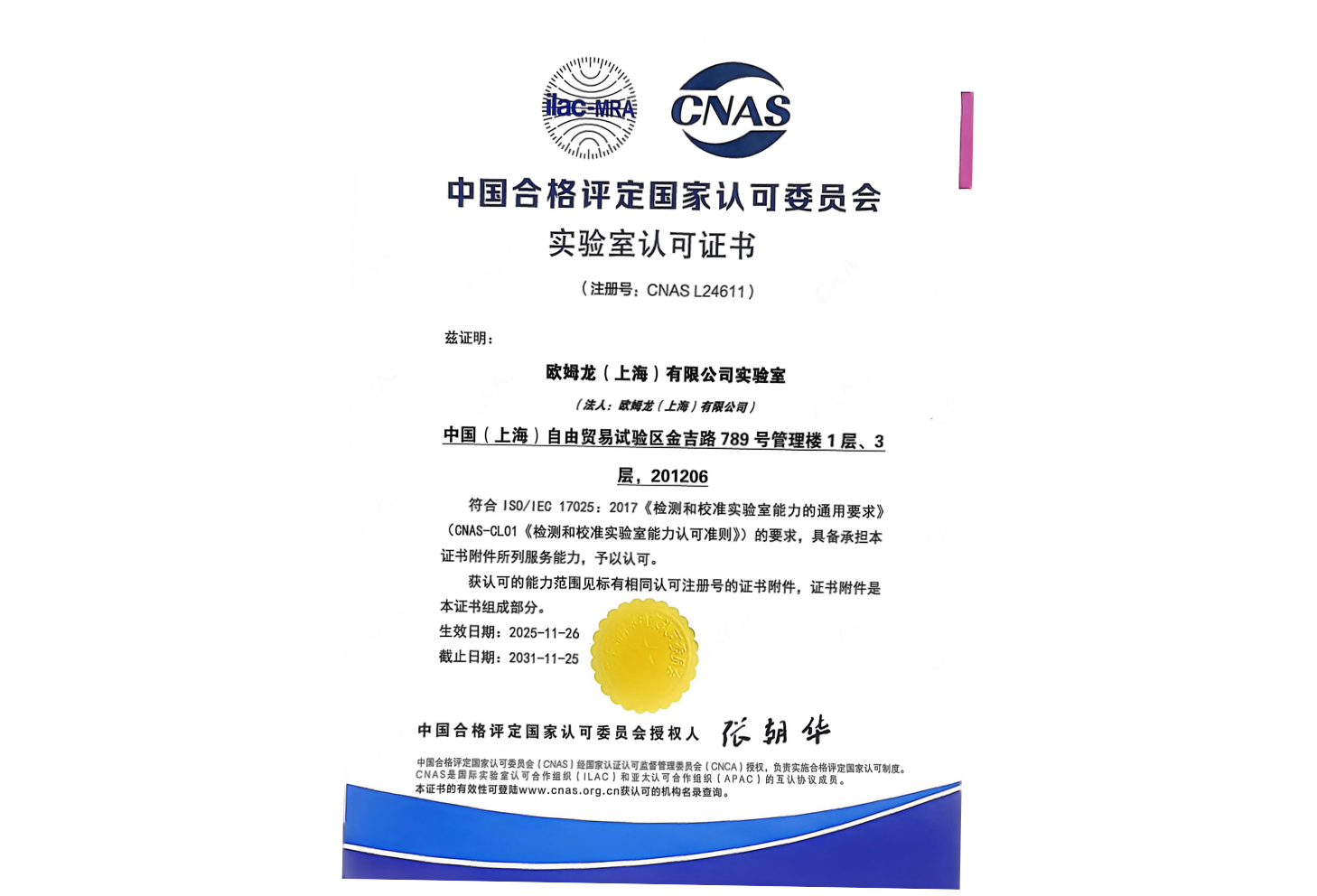 中国合格评定国家认可委员会(CNAS)实验室认可证书
